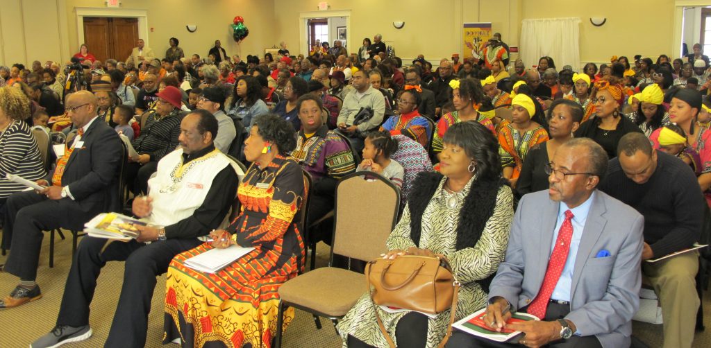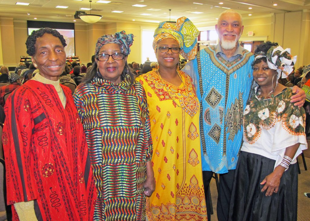 The capacity crowd at Doko Manor included many wearing traditional, colorful African native dress, a visual highlight of the event. Radio personality Jamal Bates emceed the program, and each of the nine churches participating in the program sponsored vendor booths featuring their own histories.