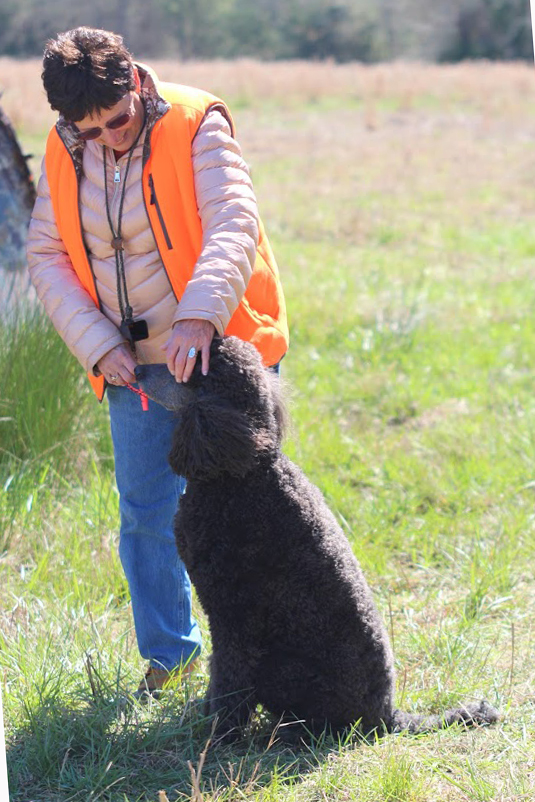 At the conclusion of Sunday afternoon’s testing, ribbons and titles were presented. Nan Gaddy’s Gunnie, an 8-year-old male Boykin, competed in both days of the testing and earned two additional qualifying passes to complete the title of Upland Junior Hunter.