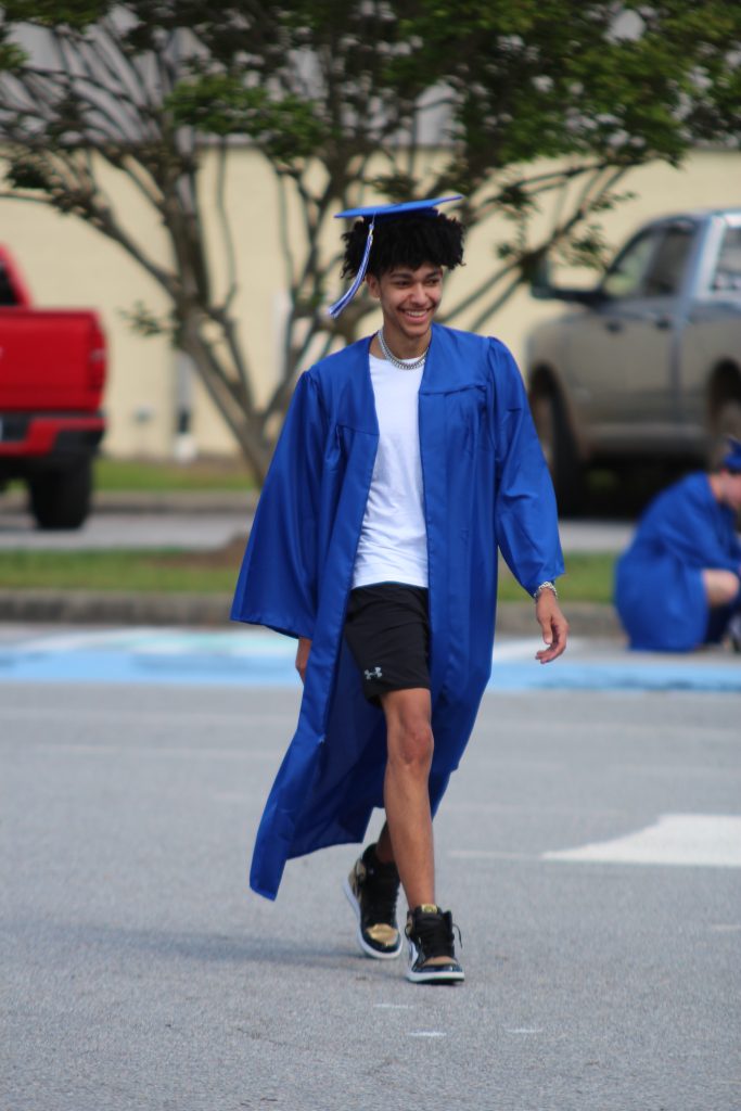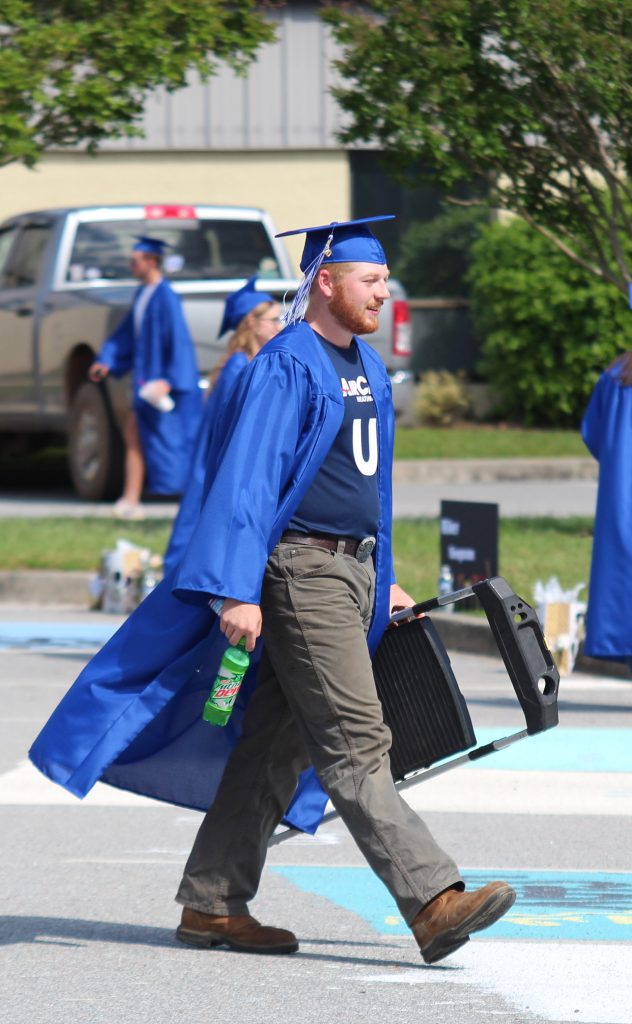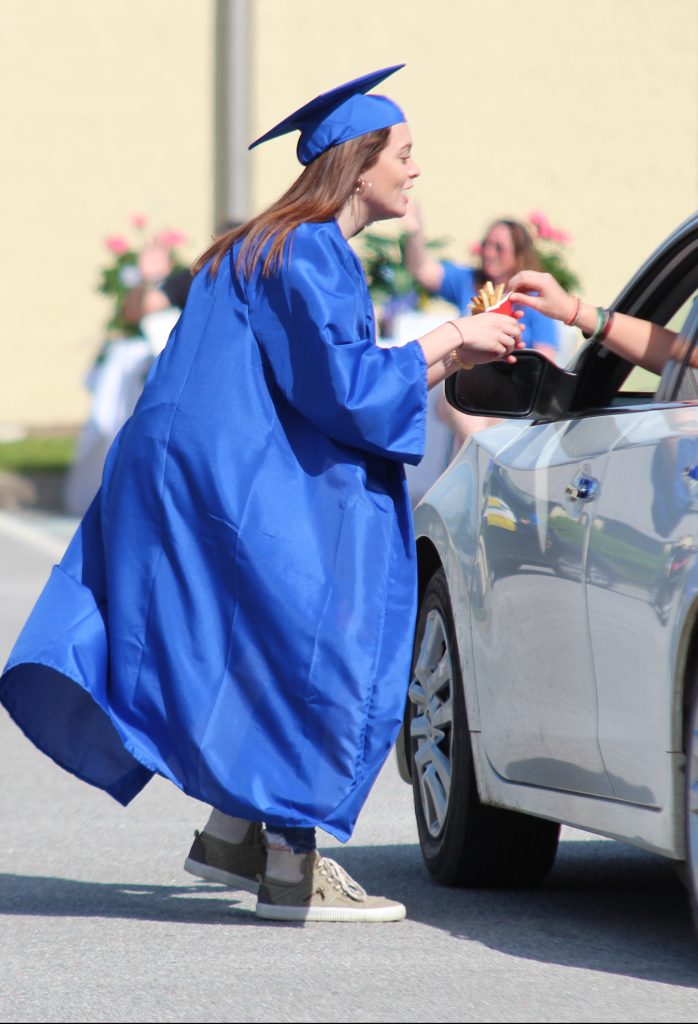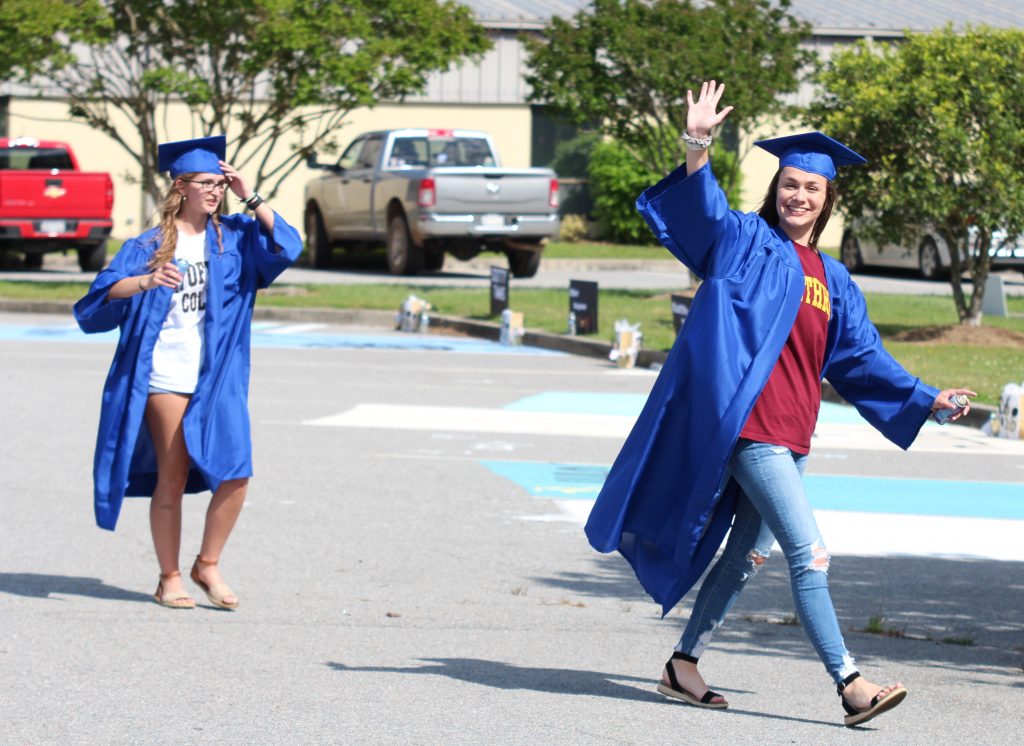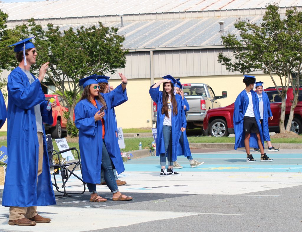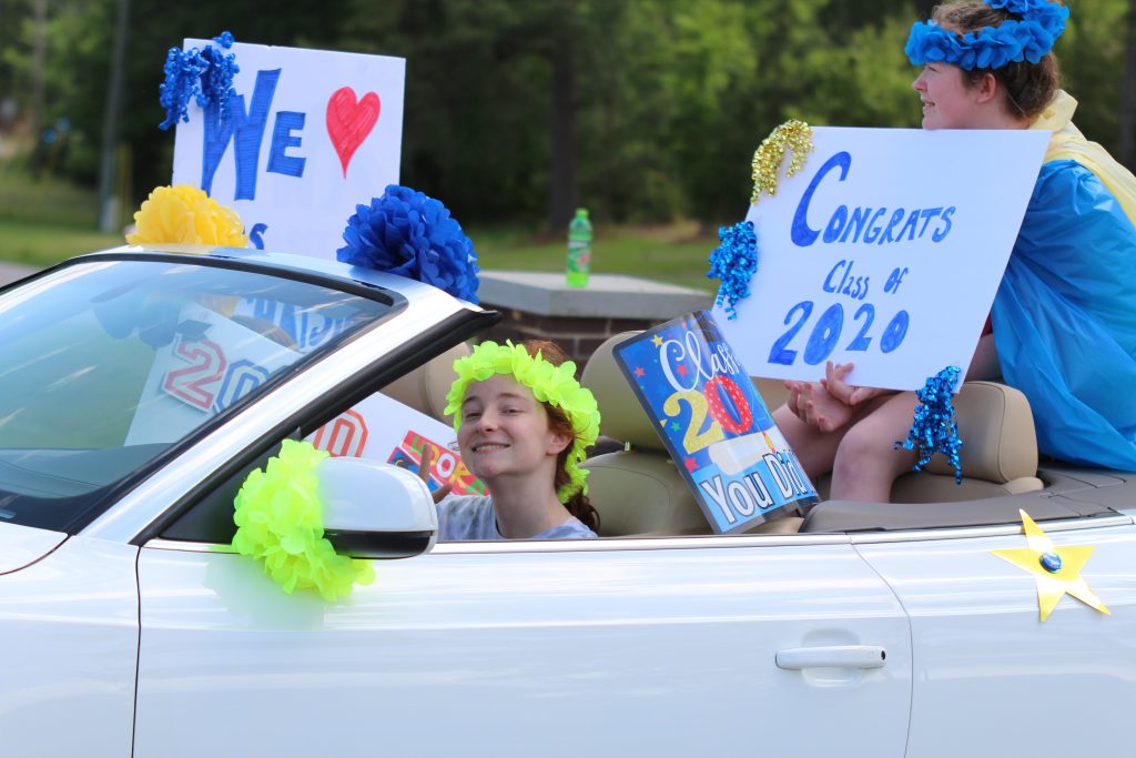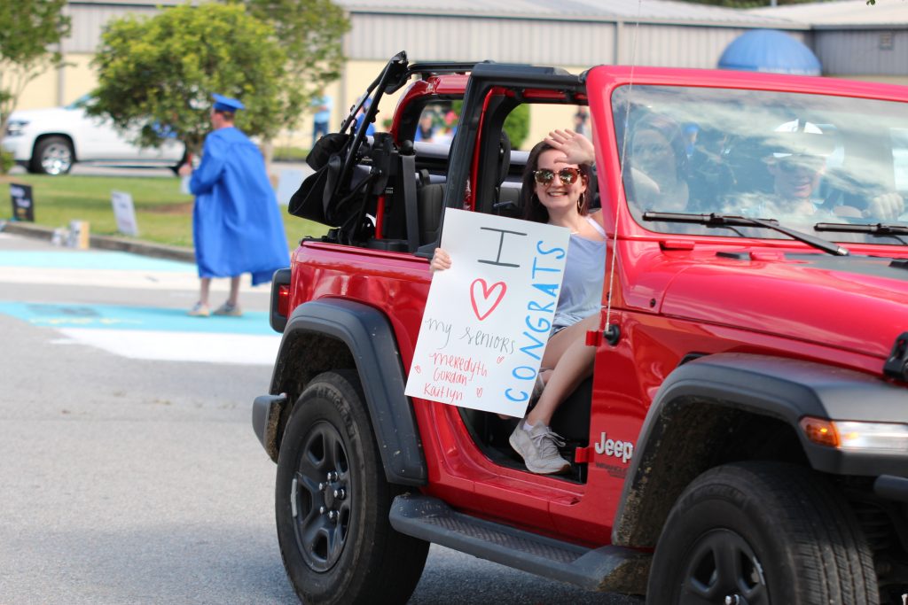 Richard Winn’s seniors were escorted down Old Chester Road in their cars and then paraded on foot through the parking lot before standing in designated spaces as the Richard Winn community drove by to wish them congratulations with signs and honking horns. Chaisson also welcomed the parade of appreciative cars from a special area designated for her.