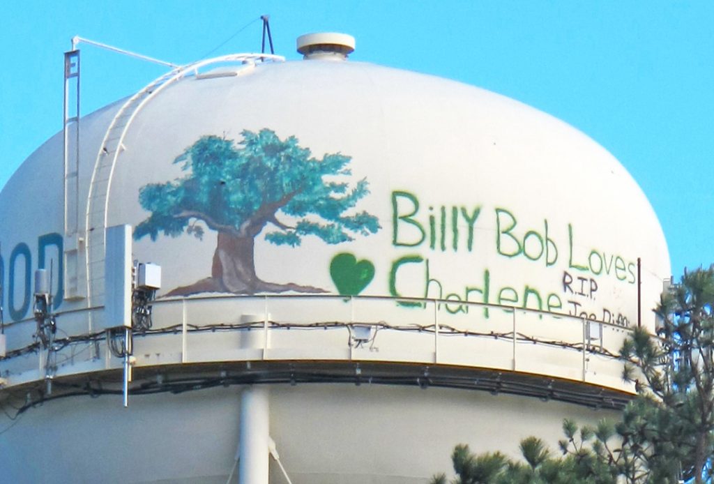 The song tells the story of a boy named Billy Bob who fell in love with a girl named Charlene. They met in high school in the 1960’s, and, to proclaim their love, Billy Bob hauled a can of John Deere green paint to the top of the town’s water tower and, teetering on the rail, painted the words, “Billy Bob loves Charlene,” as well as a big heart, on the tower – all in John Deere green.