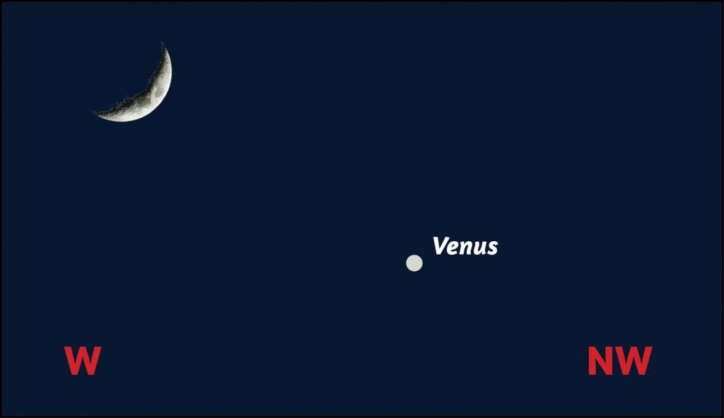 This graphic is a rendition of how the crescent moon and Venus appeared in the night sky over South Carolina Sunday night.