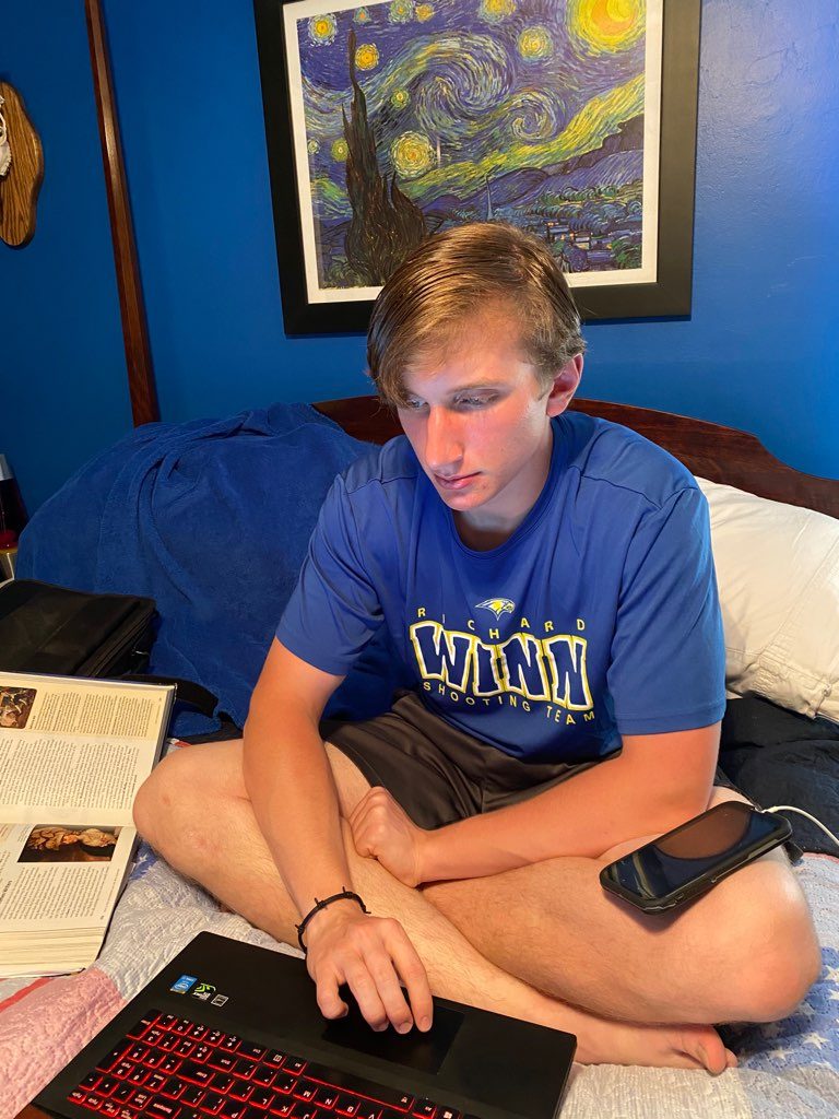 “It was a challenge at first,” said Amy Stuck with a laugh, whose sons Carson (a senior) and Miller (an eighth grader) attend Richard Winn Academy. “We had to figure out all kinds of tech stuff, like how to set up laptops with multiple screens, and how to attend Zoom meetings. And, of course, we all get on each other’s nerves because we’re cooped up together all day, every day,” she said. “But things are getting better. The boys are doing really well. My husband, David, keeps them busy with fishing trips, interesting projects, and learning how to drive a manual transmission. Plus, they enjoy helping out with the cooking.”