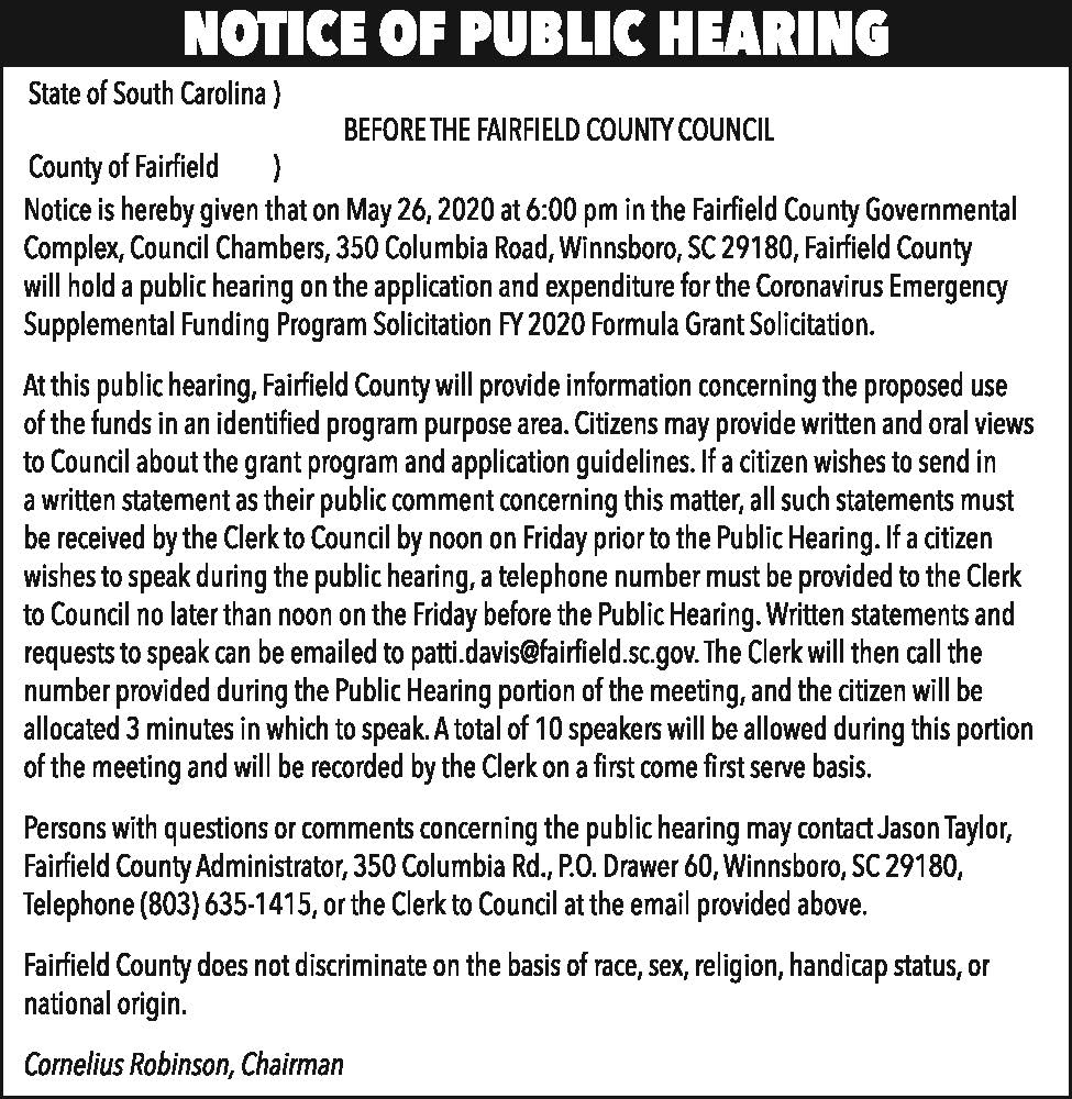 Notice of Public Hearing: Coronavirus Emergency FUnding