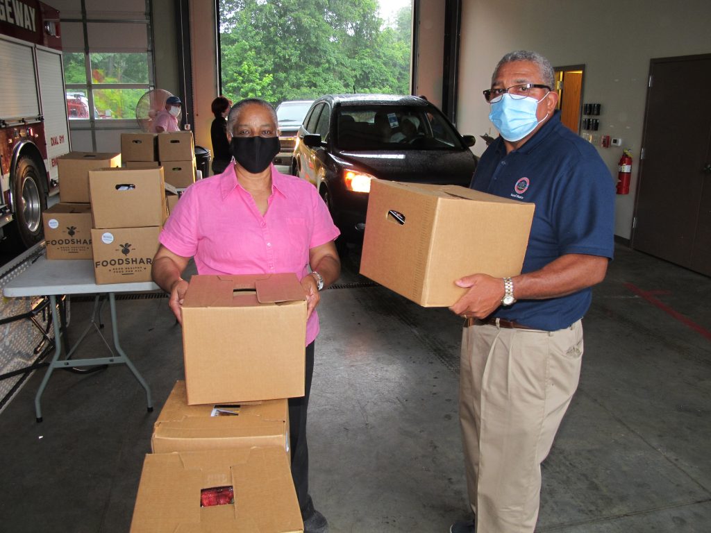 FAIRFIELD COUNTY – Fairfield County Council and Fairfield Forward provided more than 300 free boxes of fruits and vegetables for county residents on Tuesday, June 23 at three locations: Fairfield County Admin building and the Ridgeway and Greenbrier fire stations. Shown here are some of the Ridgeway volunteers loading food boxes.