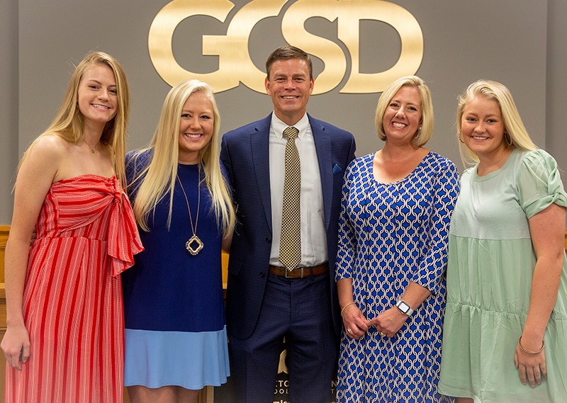 Shown with him are his wife Janet and three of their four daughters – Micah and Amanda on the left and Camryn on the right. Daughter Lauren was unable to attend due to a previously scheduled advanced placement test.