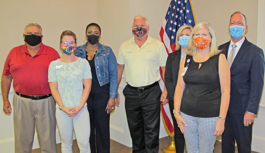 From left are: J. Michael Ross (JMR Corporation), Ariel Humphries (Grow Financial), Yvette Pearson (Watercrest Senior Living), (Tom Gawinski (Aurora IT), Jasmine Fonce (new member MekraLang North America), Maria Owens (representing Richland School District 2) and Joe Bernard (Providence Hospitals). Derrek Pugh (new member SC Youth Challenge) was not present.