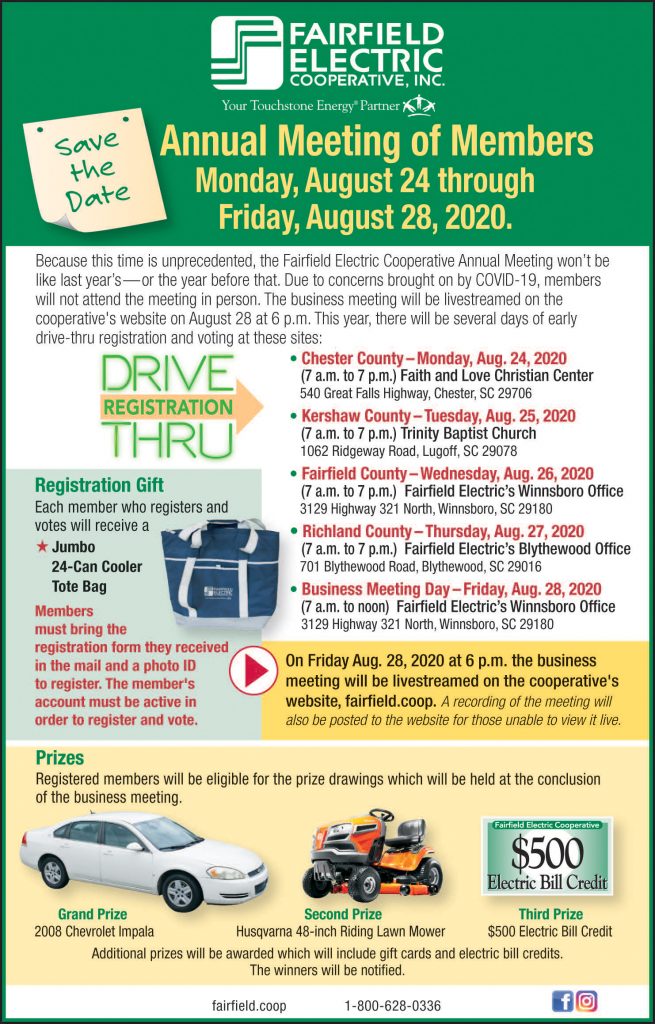 The races are for two of four seats members will decide at five different voting venues on five different dates from Aug. 24 – Aug. 28. (See dates and locations below) Kenny Miles and Robert Entzminger are running unopposed. Election results will be announced during the co-op’s annual meeting on Aug. 28. Due to the COVID-19 pandemic, the meeting will be livestreamed online starting at 6 p.m. at http://fairfield.coop.