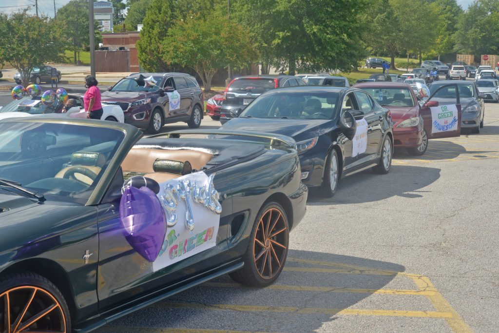 WINNSBORO – A long parade of well-wishers in a vehicle caravan sporting sparkly signs and colorful balloons snaked past the Fairfield County School District office on Friday afternoon to congratulation Superintendent J. R. Green for being named Superintendent of the Year for South Carolina.