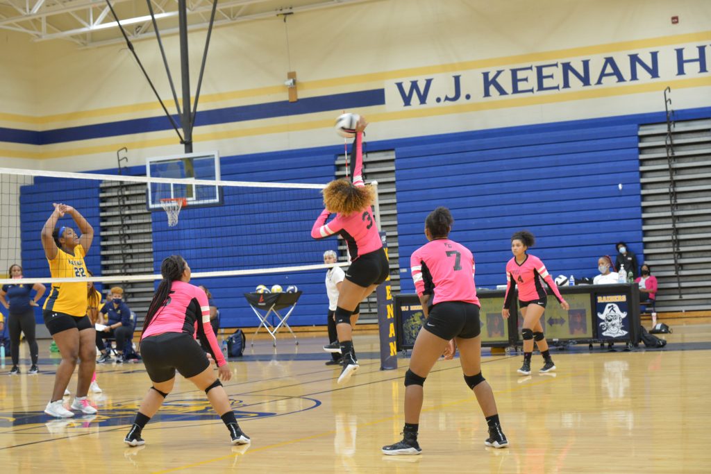 COLUMBIA – Junior middle blocker Melody Belton (3) attacks in last week’s conference match at Keenan High School. The Griffins defeated Chester at home on October 7. They are set to host CA Johnson next Monday at 6 p.m. before traveling to Eau Claire on Tuesday and hosting their final home match of the season against Lewisville on Wednesday.