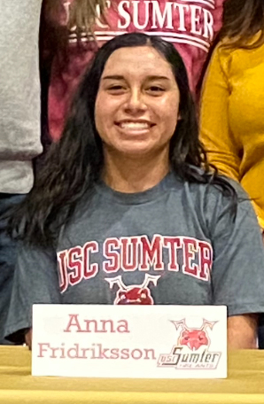 Anna Fridriksson, daughter of Julius and Astrid Fridriksson, signed a scholarship offer from the University of South Carolina at Sumter to continue her softball career on the collegiate level. Fridriksson plays infield, outfield, and pitches for head coach Jordan Atkinson at Blythewood. Fridriksson is a five-year letterman for the Bengals. She is slated to play shortstop for the Fire Ants in college.