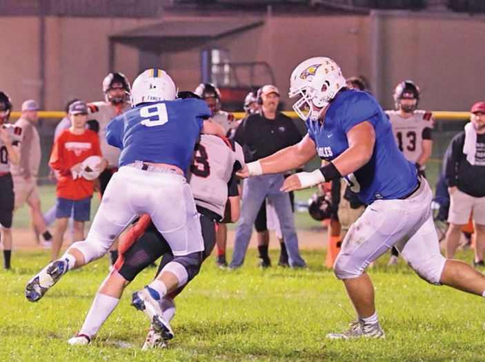 The two teams swapped turnovers as RWA threw an interception before forcing a fumble by Andrew Jackson. The fumble gave Richard Winn possession at the 30-yard line. After a delay of game penalty, the Eagles’ Zack Taylor found Derek Branham from 35 yards out for a touchdown and a lead that the Eagles would not relinquish. Richard Winn added one more touchdown with 19 seconds left in the first half to take a 22-8 lead in to the intermission break as Dru Caldwell found Branham from 28 yards out.