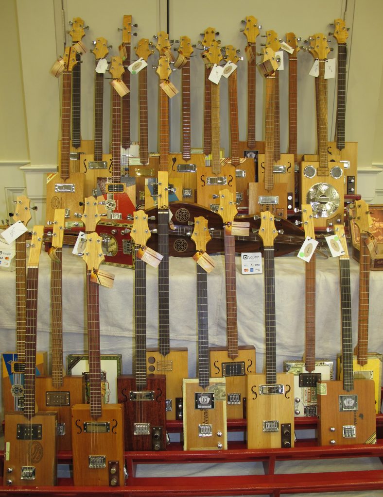 “Cigar box guitars were a product of poverty. People who loved music but couldn’t afford to buy a guitar made their own,” he said. “They might pull a picket off a fence, find a cigar box which, years ago were easy to come by, and nail them together. They would unwind the wire off an old broom, string it down the picket to the cigar box, and that was their guitar.”