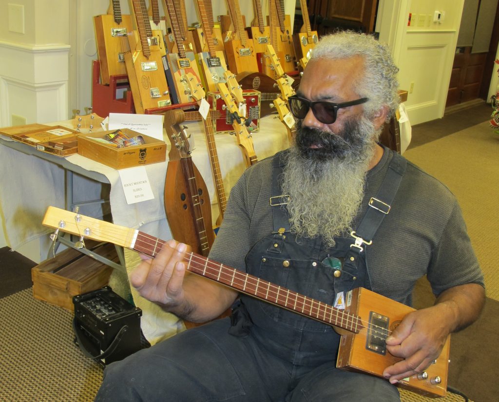 Walker said he is intrigued with all aspects of the cigar box guitar – the intricate wood carving, the construction, the sound and the history.
