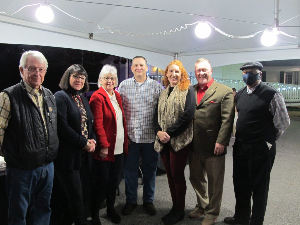 From left: Architectural Review Board member Jim McLean, Town Administrative Coordinator Julie Emory; Blythewood Historical Society board member Frankie McLean; Cook; Mayor Bryan Franklin and his wife Dusty and Board of Zoning Appeals member and former Blythewood mayor Keith Bailey.