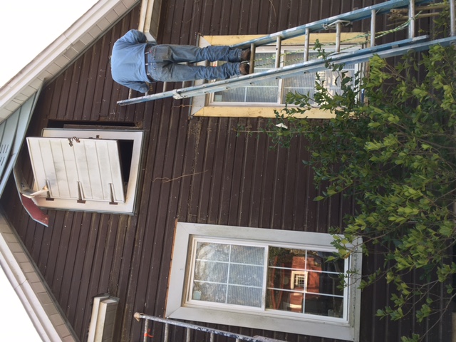 McLean’s husband Jim and a friend took the siding off one wall of the back side of the home recently to try to find out if the original wood underneath the siding is in good shape or beyond repair. They were pleasantly surprised to find well preserved German siding underneath the aluminum siding. German siding is a type of drop siding, which unlike clapboards is non-beveled and not lapped in installation. Instead it is edge-matched with a shiplap or, less often, tongue-and groove so that it installs flat on wall framing.