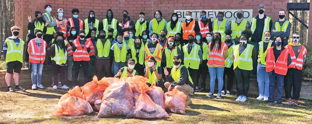 BLYTHEWOOD – Blythewood High School Bengal Battalion cadets held their second roadside clean-up event this past Saturday. Over fifty cadets picked up trash from Blythewood Road to Farrow Road. The Battalion serves the community through roadside clean-up to teach cadets the importance of selfless service, one of the Army values.
