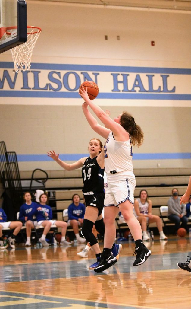 Richard Winn traded points with the Marlins in the opening quarter but held a tight 13-12 as they moved to the second. Lowcountry Prep managed to stifle Eagle scorers Meredith Pope and Taylor Spires in the second period, allowing only five points from the field at the hands of freshmen Meagan Brigman and Brinson Baker. Sophomore Mikaela Miller put up four points from the foul line, but the Marlins outscored Richard Winn 12-10 to take the 24-23 lead at halftime.