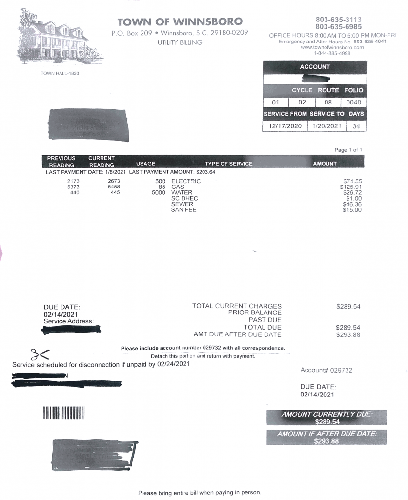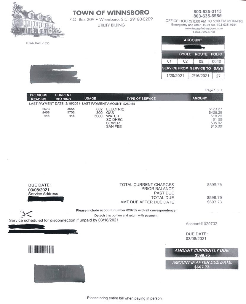 Alexandra Watson, one of many Winnsboro residents who have lodged complaints with the Town over inconsistent and high utility bills – and the town’s lack of response to those complaints – said her family’s February gas bill was $408.26 for 27 days while their January gas bill was only $125.01 for 34 days. | Barbara Ball