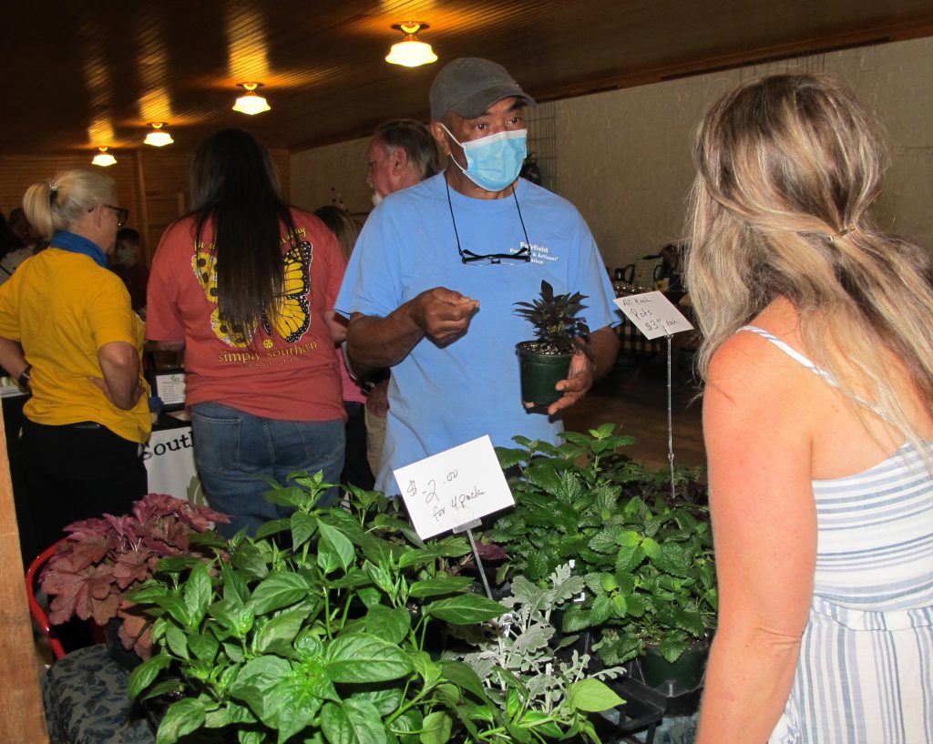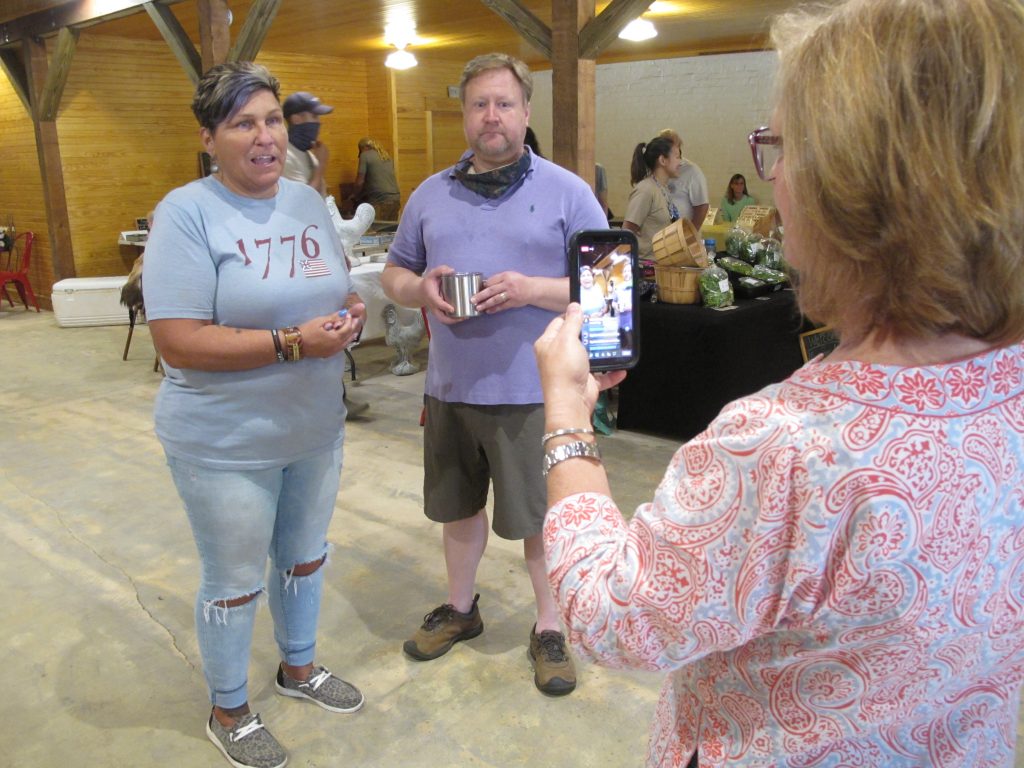 County Councilman Douglas Pauley and Jerrica Beam, owner of To Be Stitched register at vendor Caitlin Case’s booth.