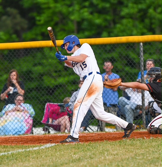 Eagle senior John Russell (15) batted 5-8 over the three-game stretch. | Millie Lambert
