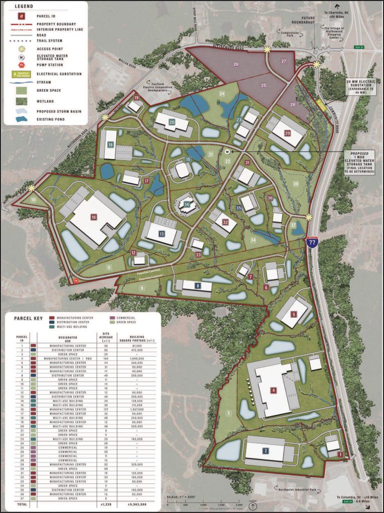 The portion of the property where commercial development is planned consists of roughly 100 acres, which has frontage on Blythewood road and is mostly designated as part of the town’s “town center” zoning classification, which allows for multiple uses but is relatively restrictive.