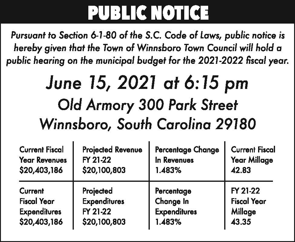 Public Notice: Winnsboro municipal budget
