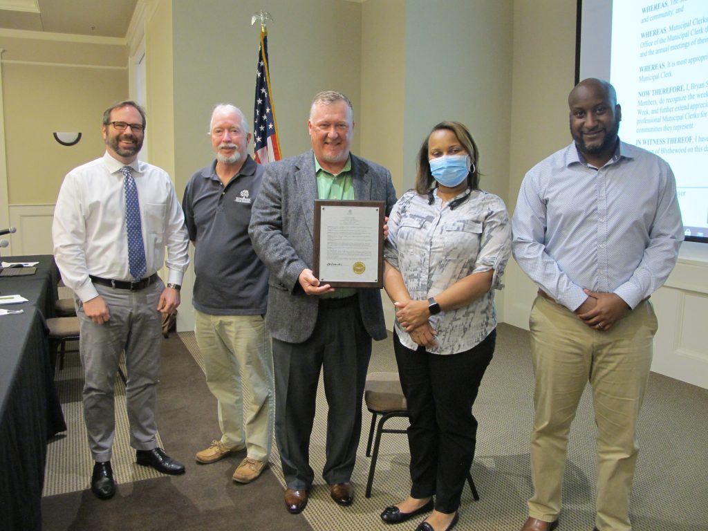 BLYTHEWOOD – During the 52nd Annual Professional Municipal Clerks Week celebrated May 2 – 8, Blythewood Mayor Bryan Franklin presented a proclamation in honor of Blythewood’s town clerk, Melissa Cowan, during Monday evening’s council meeting at The Manor. Franklin said his presentation was on behalf of all the Blythewood town council members.