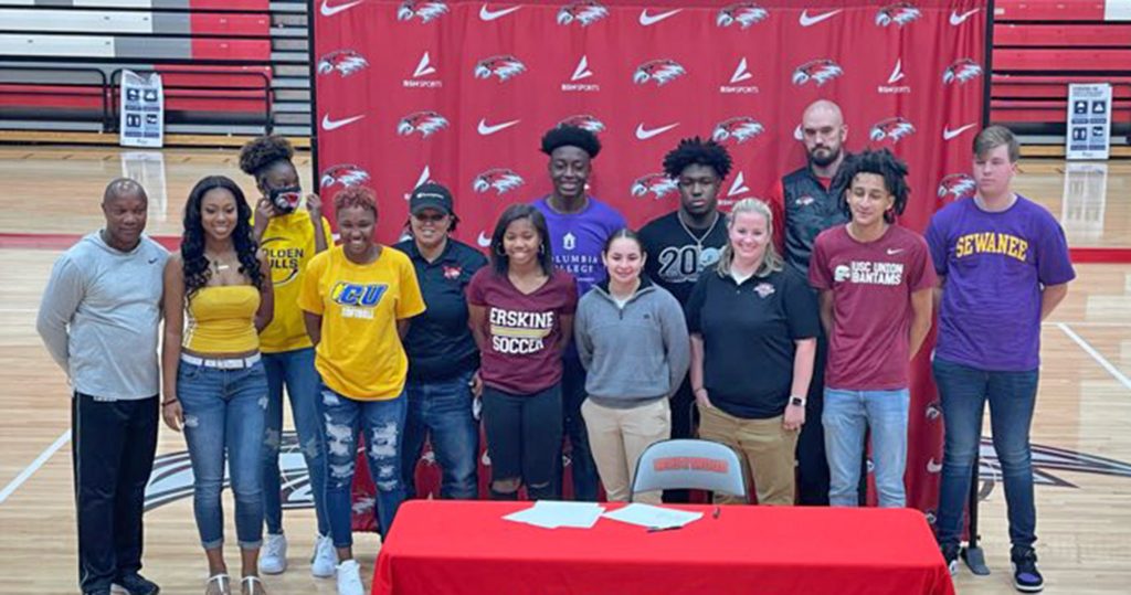 Herrid Edwards, son of LaTosha Glisson, committed to Columbia College’s track and field program. Edwards was a top-three Discus thrower in the region and an Upper State qualifier.
