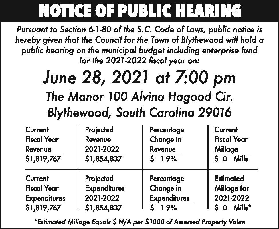 Notice of Public Hearing: Town of Blythewood