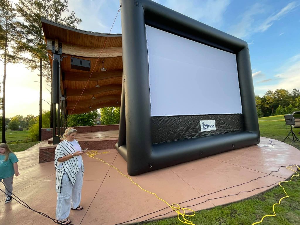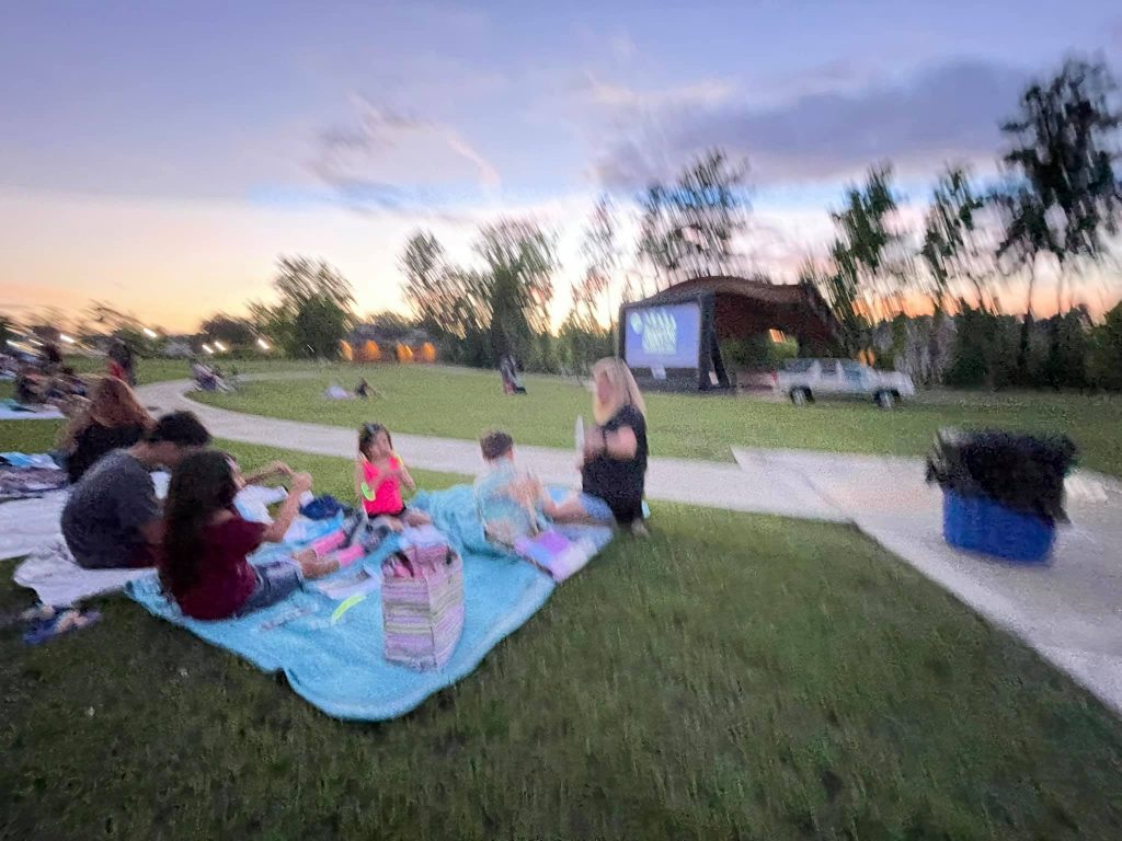 BLYTHEWOOD – Doko Meadows came alive last Saturday as movie-goers enjoyed an outdoor viewing of Jumanji in the park. The movie was one in a series sponsored by Guaranteed Rate Affinity Loan officer Erica Page and The Hunt Team realty. Attendees were invited to bring items to donate to Epworth Children’s Home.