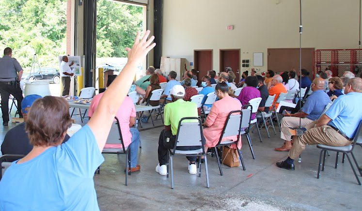 Bell’s meeting in the Ridgeway Fire Department brought about 70 people. It had been billed as a town hall meeting for people to ask questions, but when attendee Tony Armstrong asked a question about the renovation of Mt. Zion, Bell said questions could only be asked about the presentations that would be made.