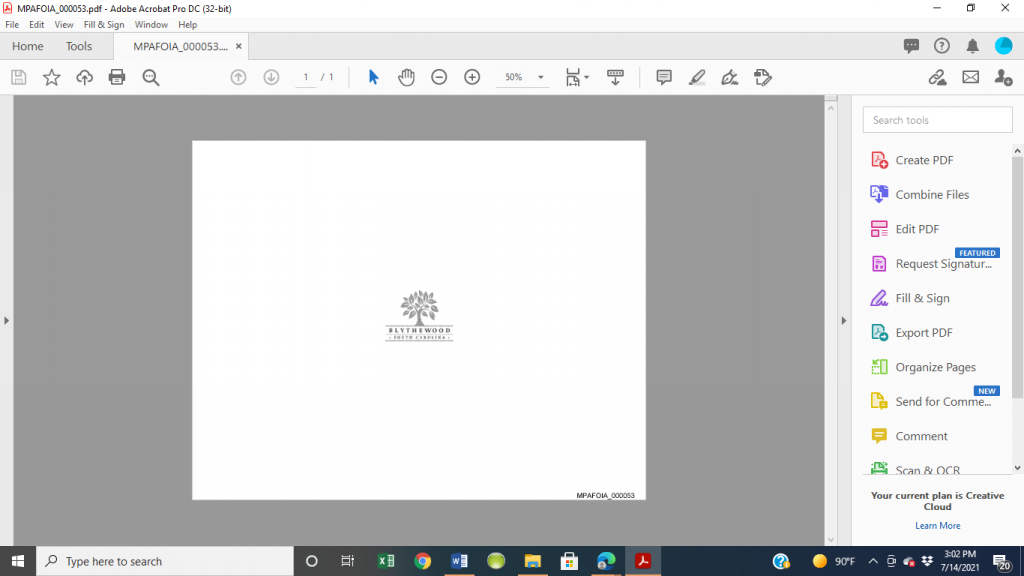Of the first 202 documents opened so far, 70 are emails between the town and the Blythewood Chamber of Commerce regarding the chamber’s regular breakfast meetings, winter gala and other general information not germane to the FOIA request; 16, so far, are blank pages displaying only a logo; 26 contain coded information that is not discernable; 40 concern random town events unrelated to MPA; 18 are unrelated agendas for various town board and committee meetings not requested.