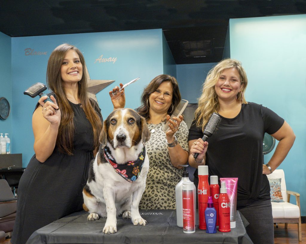 Her older daughter Taylor, 28, has been working there with her for nine years. Her younger daughter Blythe, 22, also a stylist, but for dogs, not humans, and owns her own mobile dog grooming business with a list of about 300 four-legged clients. She says much her business has grown quickly and that much of that growth has come by word of mouth through her mom’s and sister’s clients at Blown Away.