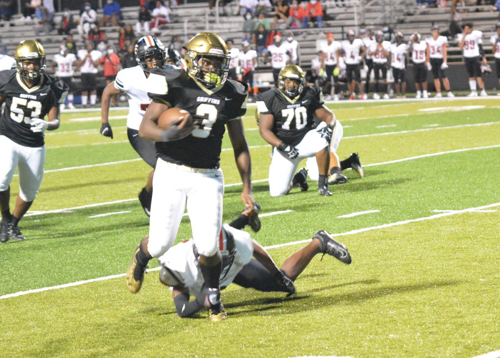 With the Griffins (3-1) down 18-14 at halftime, head coach Demetrius Davis implored his team to find some quick solutions in passing to get the advantage over Westwood (0-2).