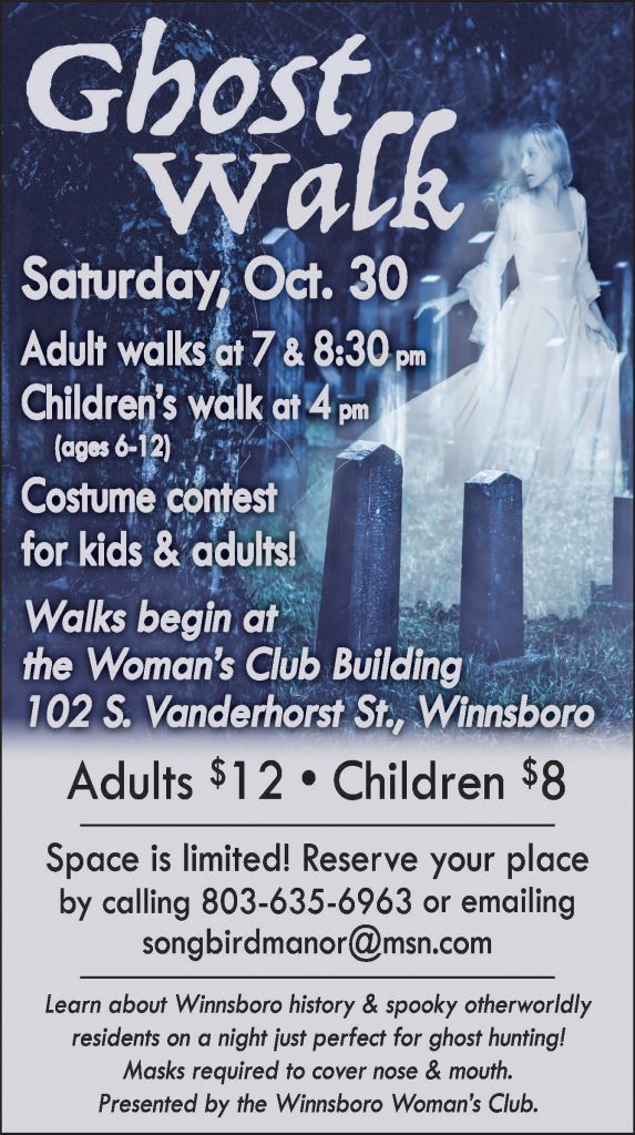 WINNSBORO – Expect something scary to happen during the Winnsboro Woman’s Club annual Ghost Walk on Saturday, Oct. 30.