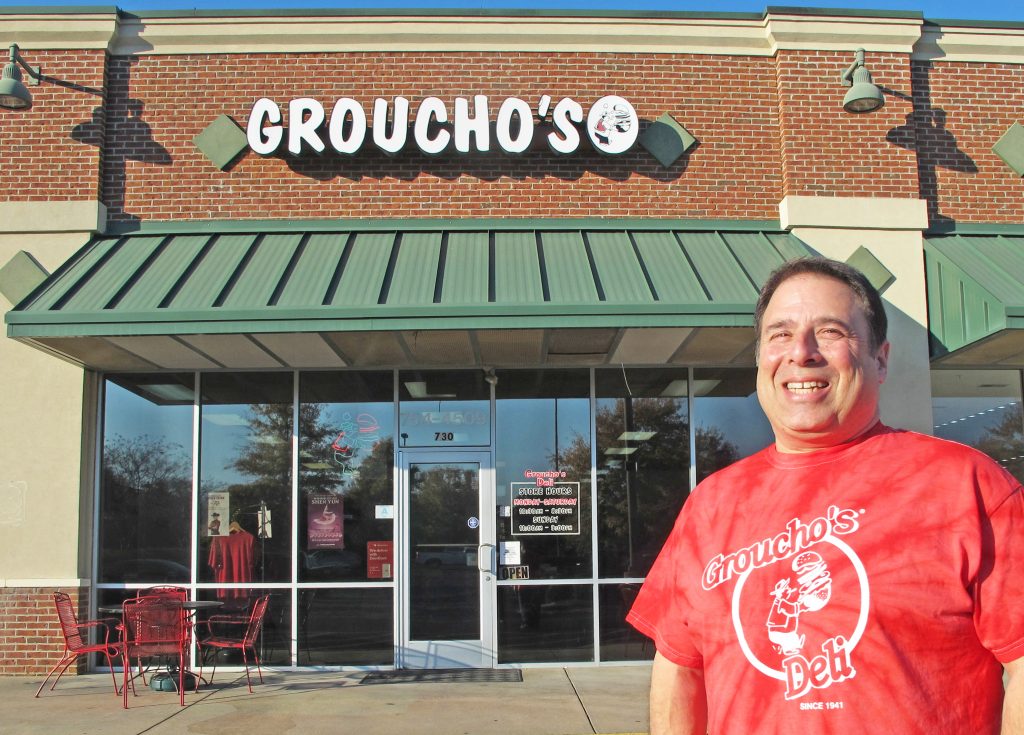 “For people in Columbia and Blythewood and South Carolina, everybody knows about Groucho’s Deli since it’s been around since 1941,” he says, “but a good bit of our business is people who drive down the Interstate and will stop in and see our sign who’ve never been here before.”