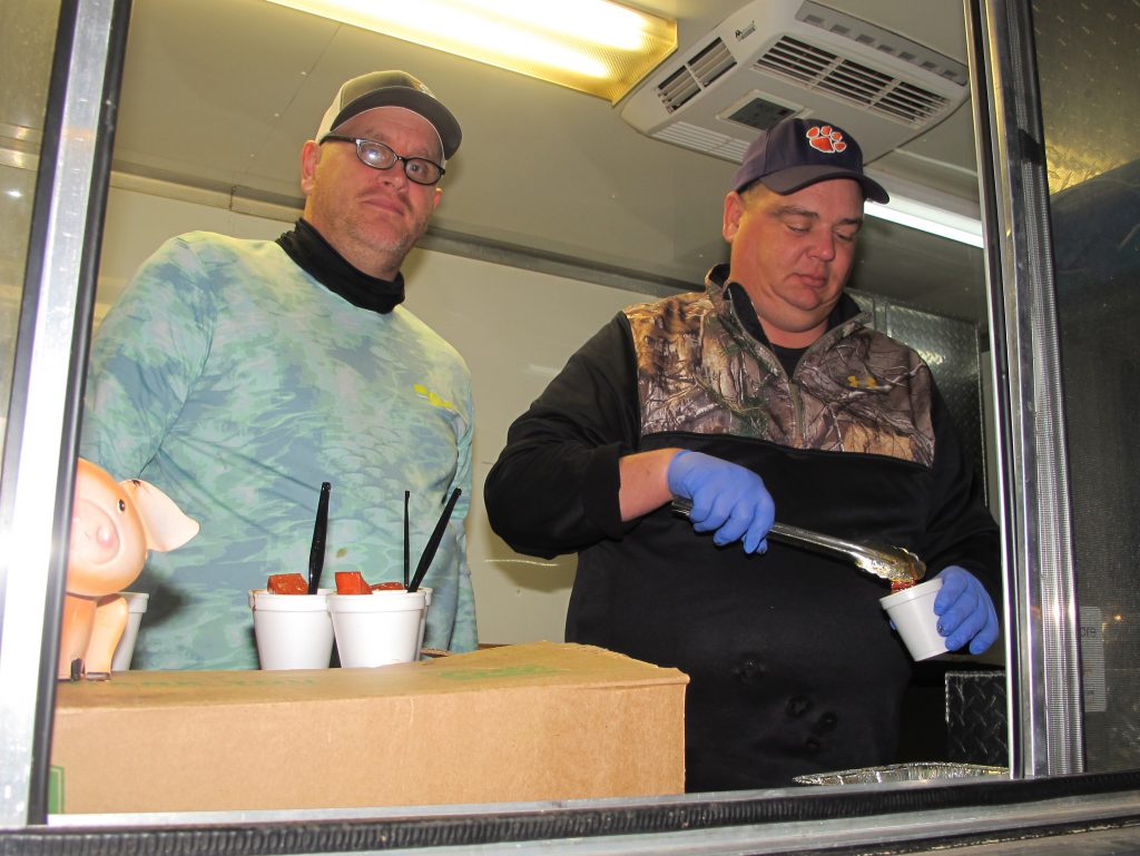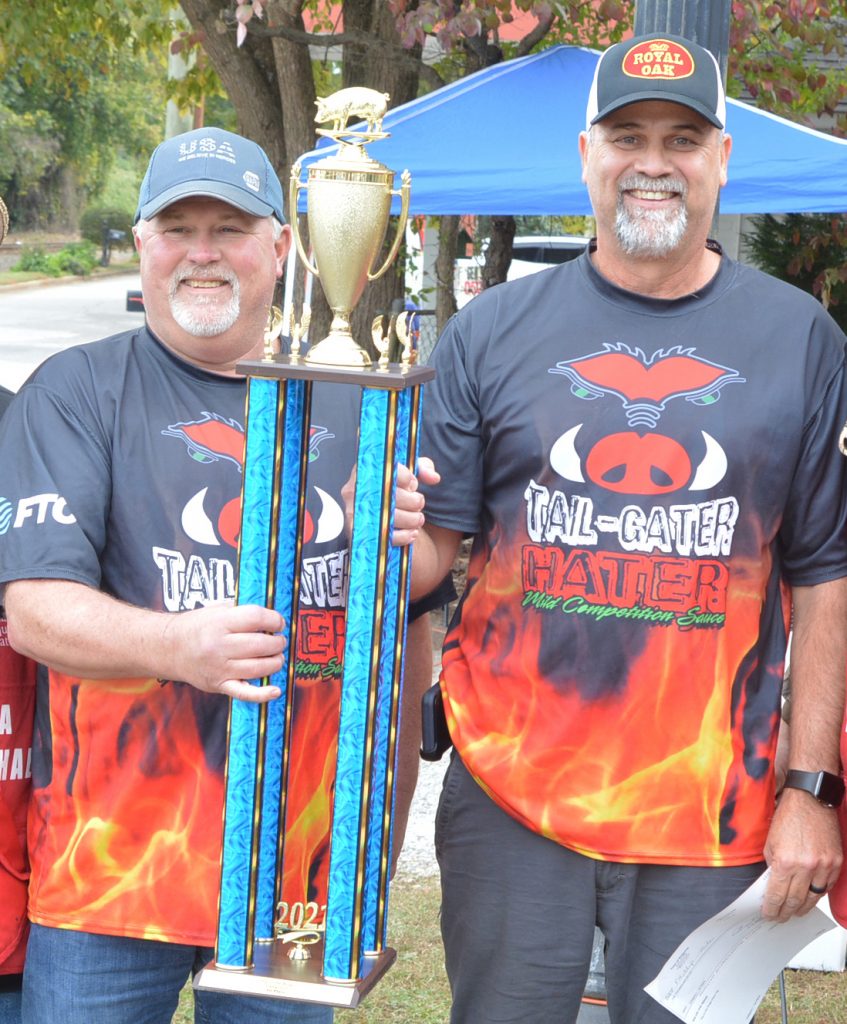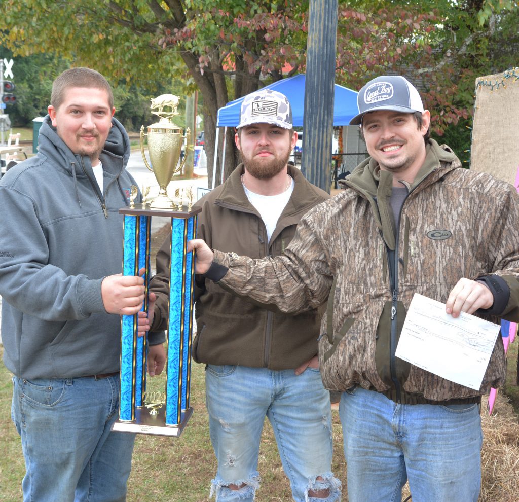 Pictured above are the barbecue winners. Left, 1st place professional division and 1st place in ribs: Philip Miles’ Tail-Gater Hater. At right, 1st place amateur division: Davis Slaton’s Swamp Reapers BBQ, from Blythewood, Brett Thomas, left, Keith Brinson and David Slaton.