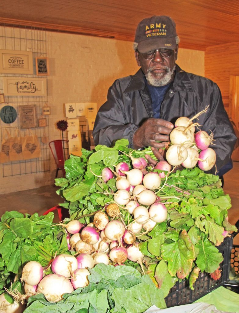 Rev. Alonzo Ruff with his home grown turnips.