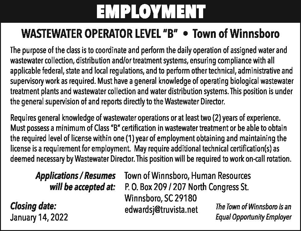 Employment: Wastewater Operator Level B