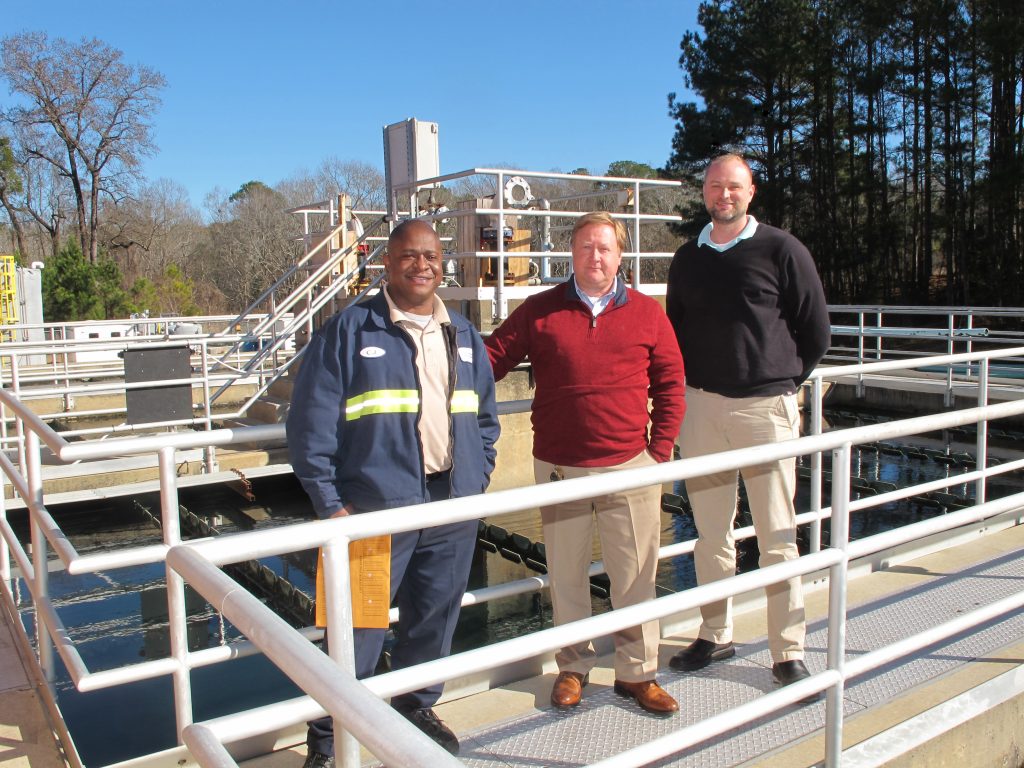 Winnsboro Town Manager Jason Taylor, center, Director of Streets & Sanitation Calvin Johnson, left, and Assistant Town Manager for Development Chris Clauson are shown here at the Winnsboro Water Treatment Plant. | Barbara Ball