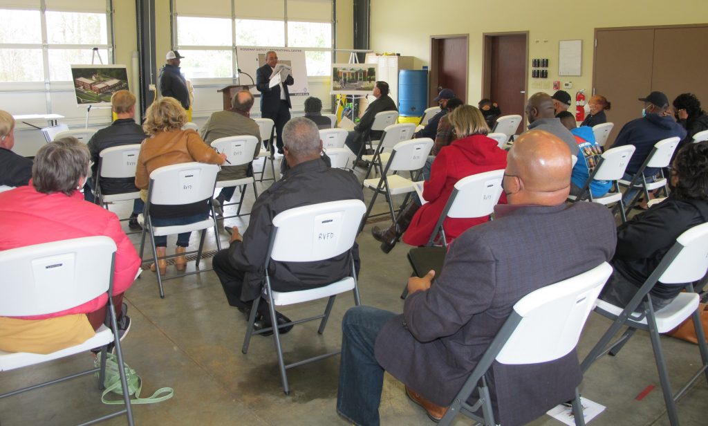 A question was asked from the audience about whether the soil where the center is to be built might be contaminated, and Bell responded that holes had been bored in the ground and sent off to DHEC for testing. He said the county is awaiting the results.