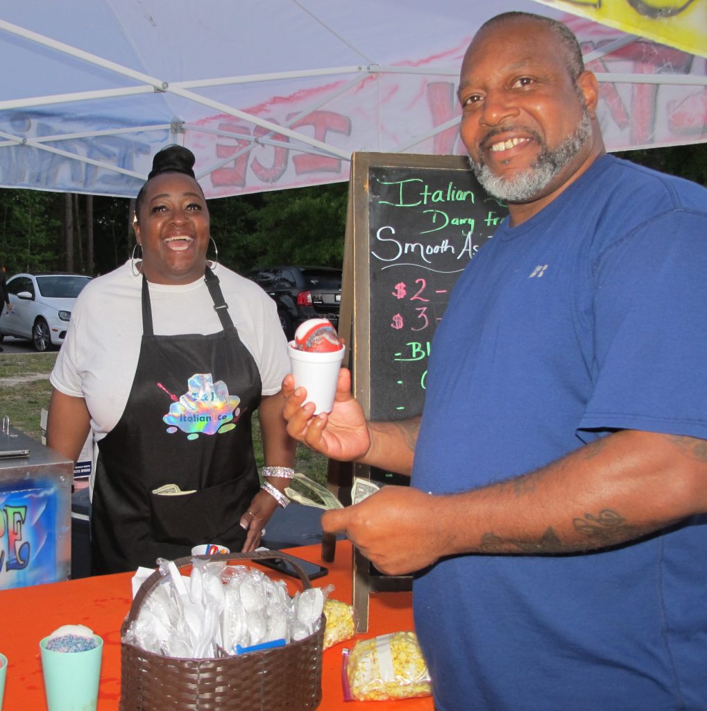Mark Homson of Jenkinsville gets a sweet treat from T & G Italian Ice vendor Jennifer Geter.