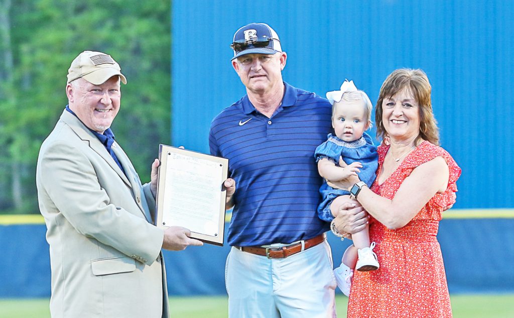 BLYTHEWOOD – Mayor Bryan Franklin presented a proclamation from the Town to Blythewood High School Athletic Director Barry Mizzell to honor Mizzell, who was recently named Region 4-5A Athletic Director of the Year.