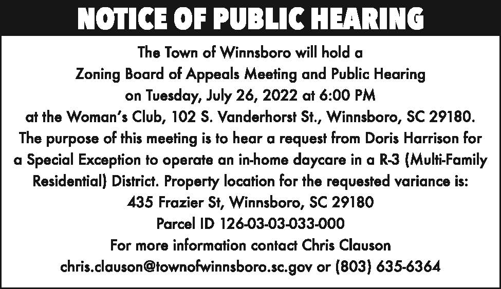 Notice of Public Hearing: TOW Zoning Board of Appeals