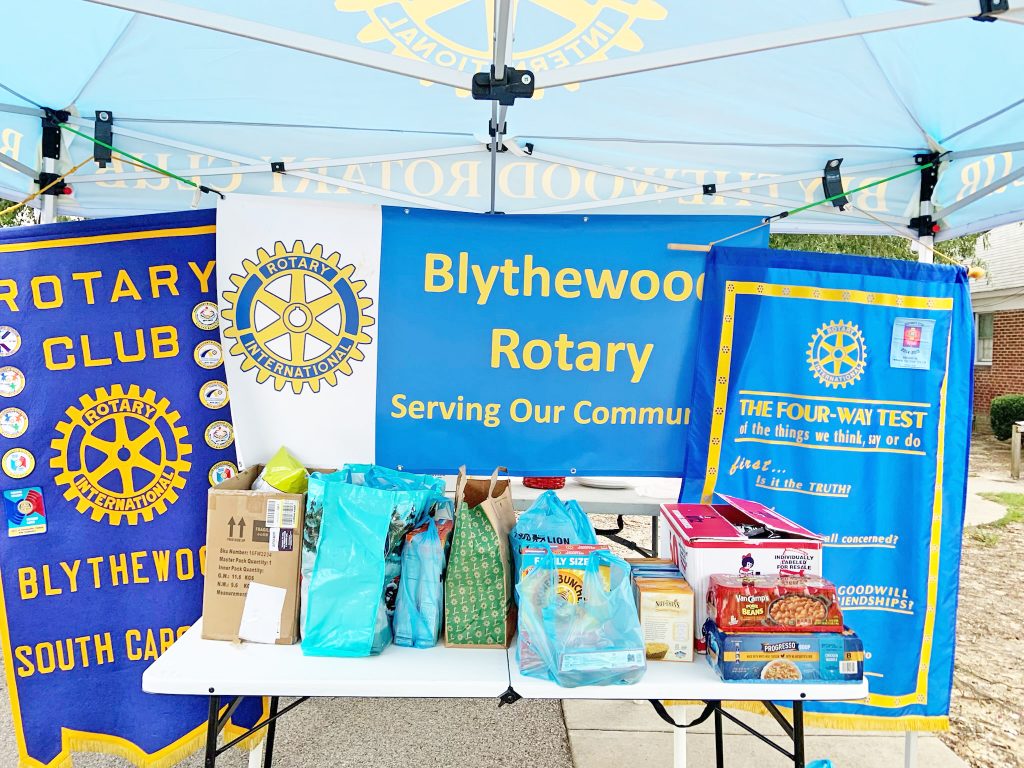 BLYTHEWOOD – Members of the Blythewood Rotary Club held a food drive for Christian Assistance Bridge (CAB) on Thursday, Aug. 11 from 7:30 a.m. until 9 a.m.. Besides food donations, the club received almost $1,000 in monetary donations for CAB.