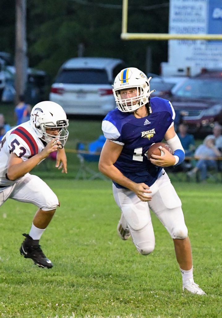 Caulder and Spires shared duties in the ground attack, with Caulder rushing for 109 yards and a touchdown, and Spires running for 53 yards. Sophomore Charlie Bonds also waltzed across the goal line for a touchdown. Sophomore kicker Josh Tindall completed 3 PATs and senior Travis Bonds connected with Charlie Bonds to successfully convert 2 points. The Eagles scored six touchdowns total and amassed 480 yards on offense.