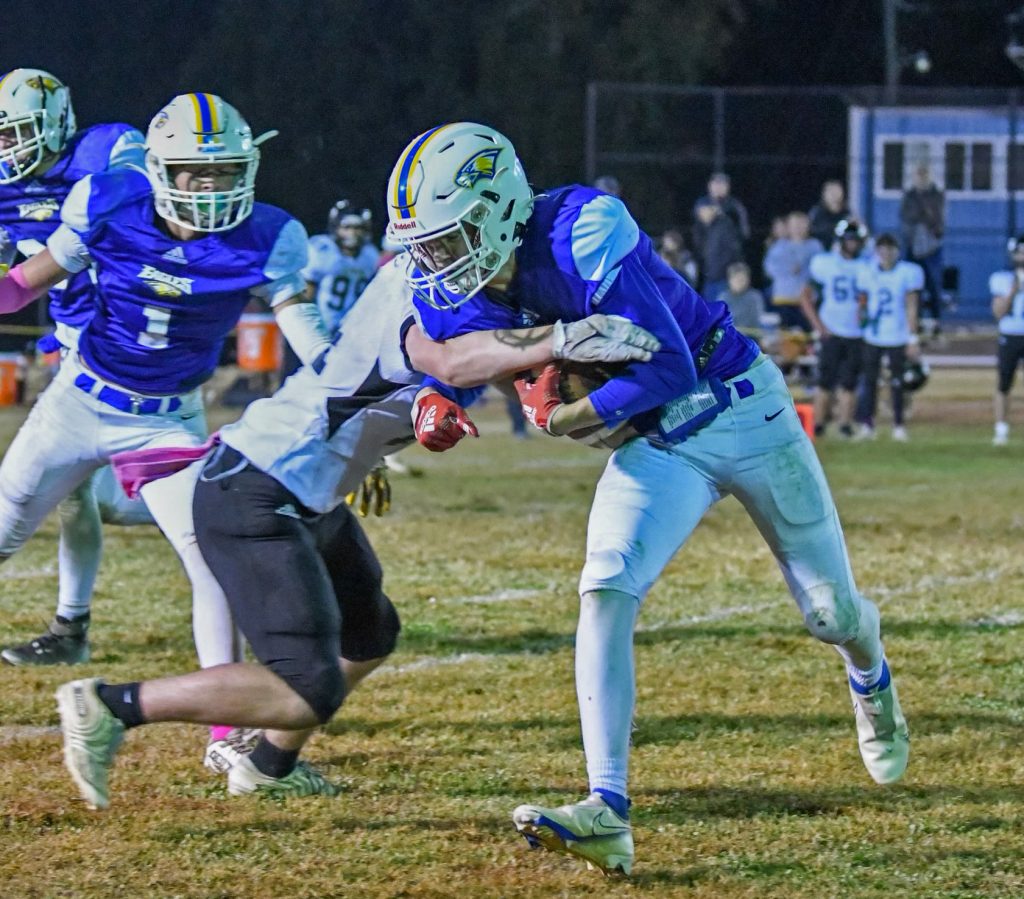 Caulder led the Eagles’ rushing attack, gaining 78 yards on 9 attempts and one touchdown. Senior Rob Wilson ran for 64 yards on seven carries, including a touchdown run. Spires gained 11 yards on 2 tries.