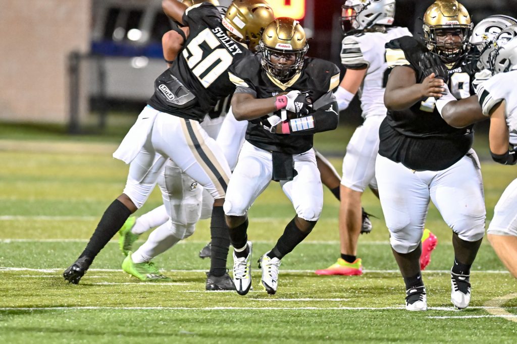 Gray Collegiate’s running attack dominated the first quarter, with two long drives filled with Ford and Jonnson runs, capped with each running back scoring a touchdown to go up 15-0.