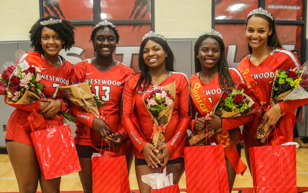 Westwood volleyball seniors Ivana Thigpen (7), Tavia McMillan (13), Payton Pilot (8), Kylah Wade (3) and Olivia Laatsch (1).