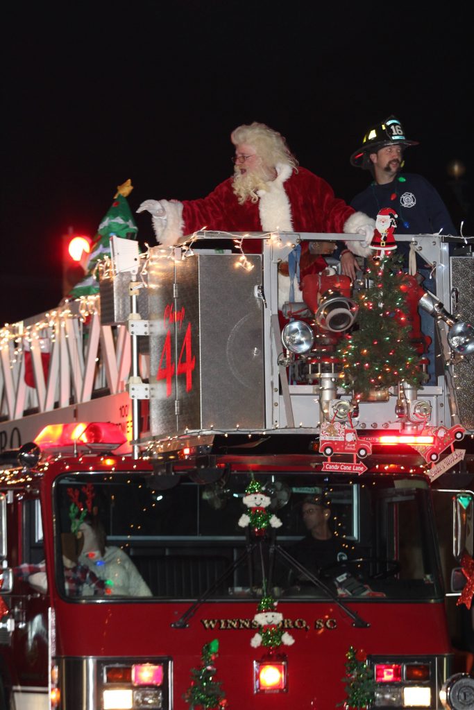 Winnsboro closed their annual Christmas parade with Santa riding atop Winnsboro’s Ladder 44 firetruck.